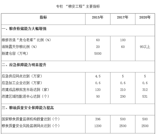 二、各地區、各部門要加強《規劃》的組織領導和統籌協調,抓緊推進以“建設糧油倉儲設施、打通糧食物流通道、完善應急供應體系、保障糧油質量安全、強化糧情監測預警、促進糧食節約減損”等為主要內容的“糧安工程”建設。