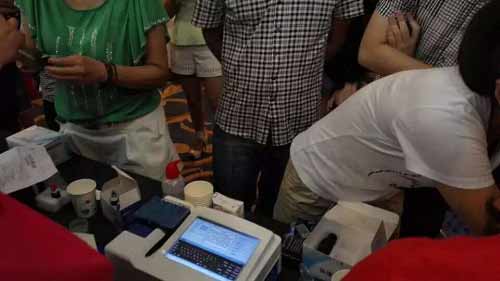食藥監(jiān)局的工作人員認(rèn)真學(xué)習(xí)快檢知識