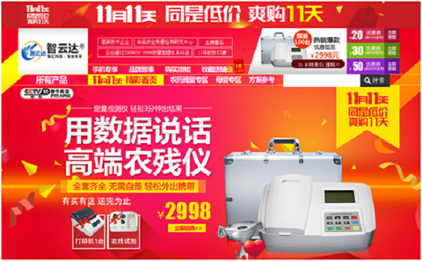 雙十一全球購物風暴來襲,智云達作為您身邊食品安全檢測專家,更多快檢產品,更多優惠等你來拿,助力食品安全我們一直在您身邊!
