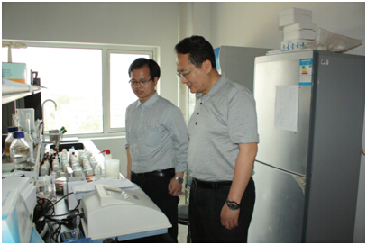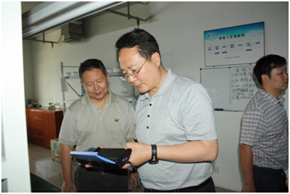 隨后,領導們參觀了儀器試劑生產中心,就有關儀器生產中可能出現的問題,進行了詳細的詢問,在??偟慕獯鸾榻B中,于軍司長還親自試用了我司生產的