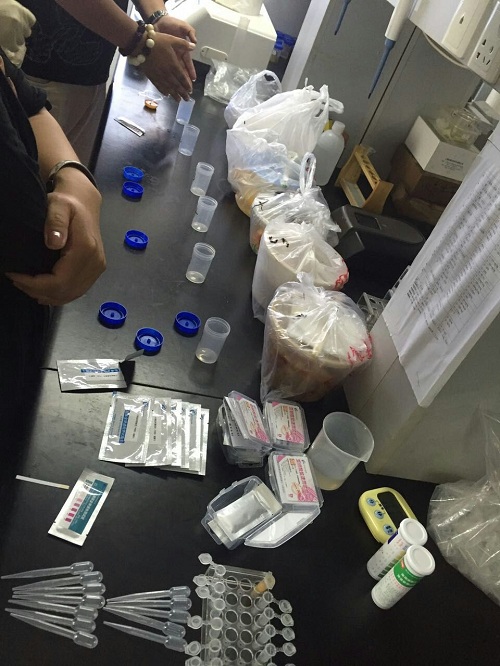 北京智云達技術工程師楊老師將準備好的麻辣燙檢測樣品分別進行標號,再通過智云達自主研發生產的快速檢測產品:火鍋底料中罌粟殼速測卡、食品中亞硝酸鹽速測試紙、食用油酸價試紙和過氧化值試紙分別對六種樣品進行檢測。