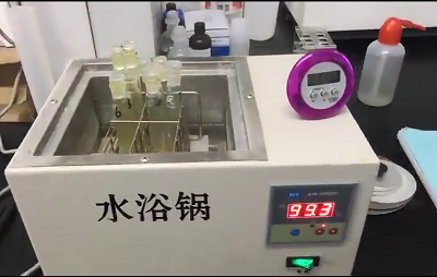 2. 把檢測管開蓋后放入沸水浴中的托架上加熱 5 分鐘后取出,上下?lián)u動 6 次。