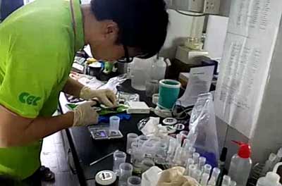 CEC食品安全檢測消費者體驗中心技術工程師楊宇斯、王盈琳與法制晚報記者吳潔