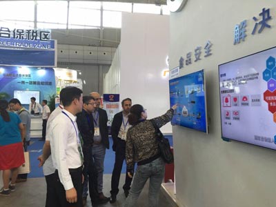 參展期間,在新疆電信食品安全解決方案展示區,展位視頻循環播放北京智云達食品安全解決方案的詳細介紹,流程及適用對象、監控系統。在電腦屏幕前,前來詢問解決方案系統的人絡繹不絕,更有感興趣的外國友人跨越語言障礙,耐心聽我們的技術人員一一做詳細解答。同時在參展區展示北京智云達自主研發生產的快速檢測儀、快速檢測試劑盒,來自伊朗的國際友人對儀器頗有好感,進行詳細咨詢。電視下方設置關注官方微信二維碼,方便興趣人員關注留言。