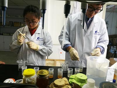 北京智云達(dá)技術(shù)工程師楊老師和王老師首先對不同樣品通過使用北京智云達(dá)自主研發(fā)生產(chǎn)的快速檢測產(chǎn)品:蜂蜜中果糖和葡萄糖速測盒,蜂蜜蔗糖半定量速測盒。