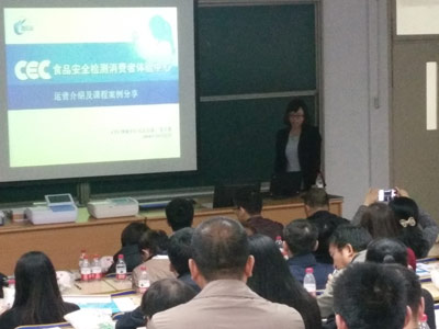 北京智云達網(wǎng)絡(luò)部經(jīng)理張立葵現(xiàn)場分享CEC食品安全檢測消費者體驗中心的運營與課程案例,在互聯(lián)網(wǎng)+的時代背景下,北京智云達在運營上,線上與線下雙管齊下,共同進步。