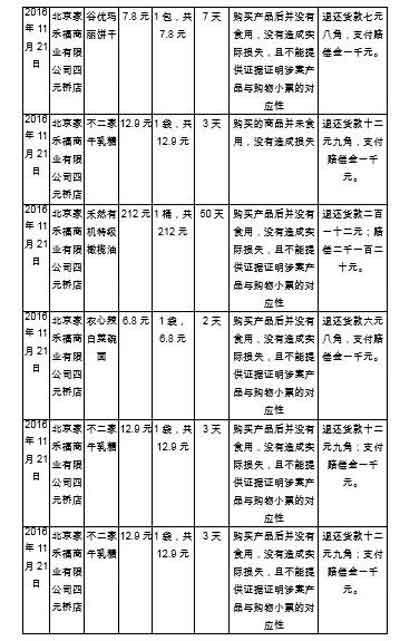 2016年11月,北京市朝陽區法院審結了11起家樂福門店出售過期食品被消費者索賠案,結果家樂福全部敗訴,共需賠償12120元。