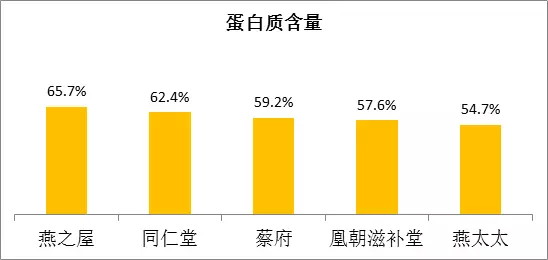 檢測結果顯示,五品牌燕窩蛋白質含量均在50%以上。