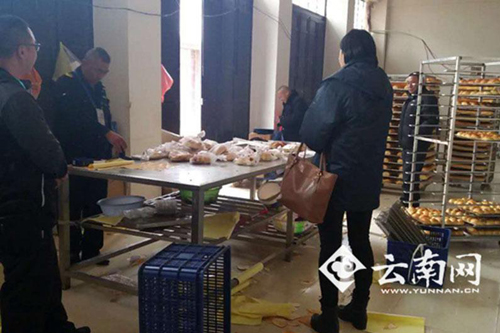 官方:黑作坊產品為假冒偽劣,銷往當地多縣。4月24日11時24分,大理州人民政府食品安全官方微博發布消息稱,2017年3月9日,根據群眾舉報,大理市市場監督管理局鳳儀監管所執法人員對大理經濟技術開發區天井村委會鳳鳴村一出租房進行了突擊檢查,發現該出租房由一名吳姓福建籍男子租賃用于生產加工面包,無法提供《營業執照》、《食品生產許可證》。圖片來源:云南網