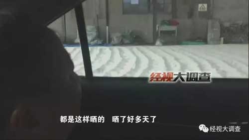 除了受潮、甚至被水浸泡過之外,這些晾曬的大米很有可能已經(jīng)變質(zhì)發(fā)霉。經(jīng)過連續(xù)幾天的蹲點(diǎn)觀察,調(diào)查人員發(fā)現(xiàn)了這樣一個(gè)細(xì)節(jié):有些袋子感覺都已經(jīng)發(fā)霉了。