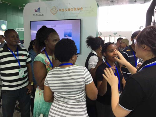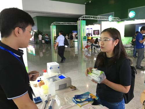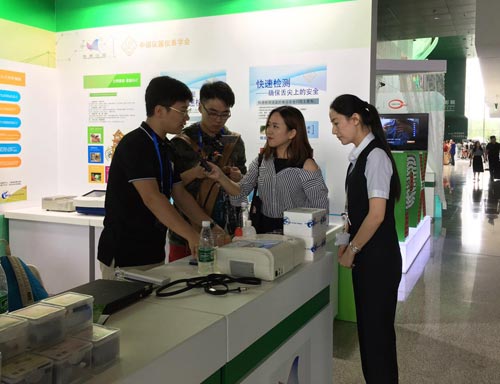 外國友人現(xiàn)場咨詢智云達(dá)食品安全快速檢測產(chǎn)品