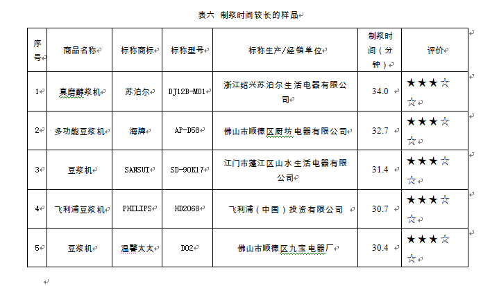 在制漿能力檢測中,標稱由江蘇松橋電器有限公司生產(標稱商標:松橋電器;標稱型號:MS-PS0801)的1件樣品,檢測結果為強陽性,即未煮熟。
