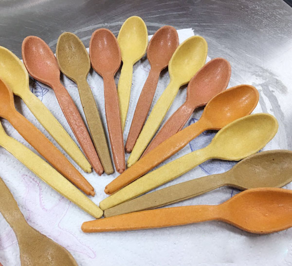 “有6種口味,5種顏色,都是五谷雜糧,來嘗嘗。”說話的女孩叫陳宇晗,勺子的發(fā)明者。記者接過勺子,細(xì)細(xì)觀察,勺子質(zhì)地光滑,勺柄堅(jiān)硬無比。外觀看起來,跟普通的勺子無異。一口咬下去,脆脆的,還夾雜著植物的清香。