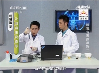 地溝油檢測儀亮相四川 記者舀地溝油進行試驗