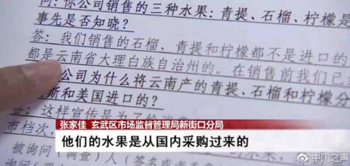 經(jīng)過市場監(jiān)管部門調(diào)查核實,這些水果并非進(jìn)口,而是國產(chǎn)的。南京市玄武區(qū)市場監(jiān)管局新街口分局張家佳告訴記者:“當(dāng)時我局在超市發(fā)現(xiàn)這個來源不明的水果的時候,立即要求下架處理,并且供貨商也承認(rèn),他們的水果是國內(nèi)采購過來的,說他們的水果來自云南。我們以涉嫌虛假宣傳進(jìn)行立案調(diào)查。”