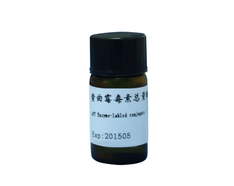 本試劑盒采用競爭ELISA,在微孔板上預(yù)包被黃曲霉毒素抗原,加入樣本/黃曲霉毒素總量標準品溶液及辣根過氧化物酶標記的黃曲霉毒素總量抗體。樣本或標準品溶液中的黃曲霉毒素與預(yù)包被在微孔板上的黃曲霉毒素抗原競爭結(jié)合辣根過氧化物酶標記的黃曲霉毒素總量抗體。未結(jié)合的酶標抗體在洗滌時被除去,再加入TMB顯色液,讀取吸光值。樣本的吸光值與其所含殘留物黃曲霉毒素總量的含量成負相關(guān)。對照標準曲線,即可得出相應(yīng)殘留物黃曲霉毒素總量的含量。