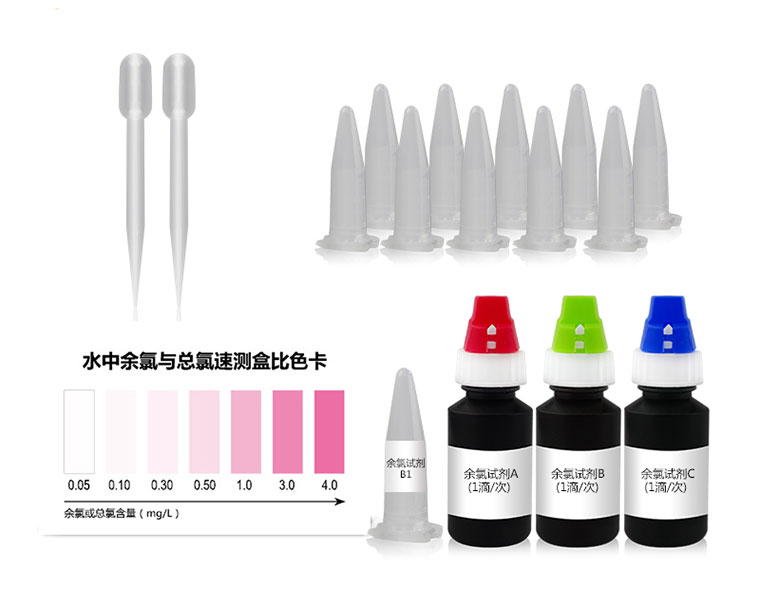 總氯分為游離性余氯(余氯)和結合性余氯。把氯投入水中后,除了與水中有機物、還原物和細菌的殺滅等氧化還原需要消耗的氯以外,水中還剩下的氯,而稱為總氯。游離性余氯,一般指水中的氯分子、次氯酸分子及次氯酸離子。總氯含量減去游離性余氯含量,可得到結合性余氯含量。本試劑盒適用于水中余氯、總氯的現(xiàn)場快速檢測。