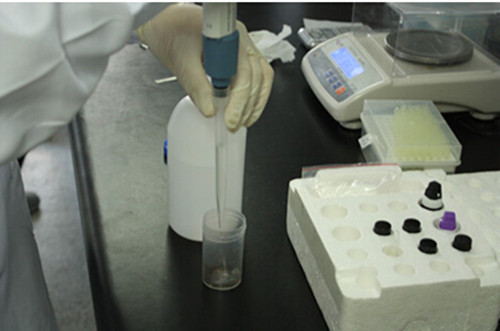 1、 用天平稱取一定量的雙七茶樣品,加入8毫升的農殘緩沖試劑提取,提取時間2分鐘。