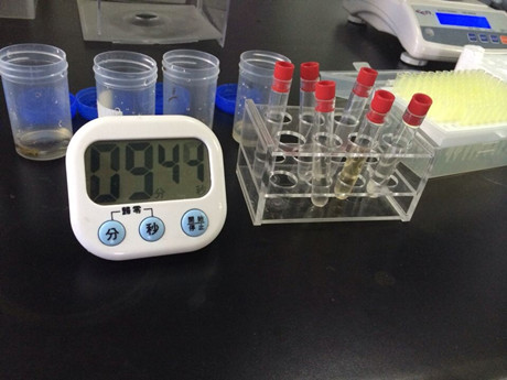1、稱取0.1g茶葉樣品于樣品提取瓶中,加8ml農殘緩沖液,8ml緩沖液震蕩提取30秒,靜置2分鐘。