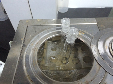 3、樣品管:吸取2mL樣品處理液于10mL比色管中,加入2mL山梨酸試劑一,加上蓋子,搖勻,于沸水浴中加熱7分鐘,立即加入2mL山梨酸試劑二,搖勻,繼續(xù)沸水浴加熱10分鐘,取出涼水冷卻3分鐘。