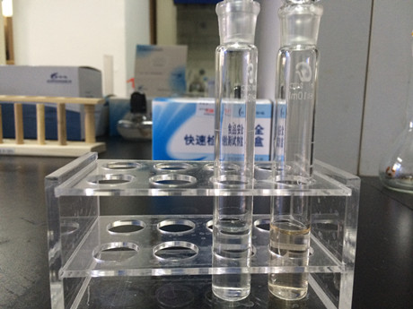 4、倒入比色皿中,置于PCS多功能食品安全檢測儀中檢測。檢測結(jié)果:兩個樣品均未檢出雙氧水。