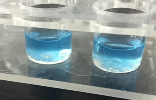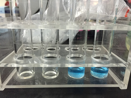 通過對比可以知道上冊清液顏色不變為藍色,因此可以判斷油樣為合格。