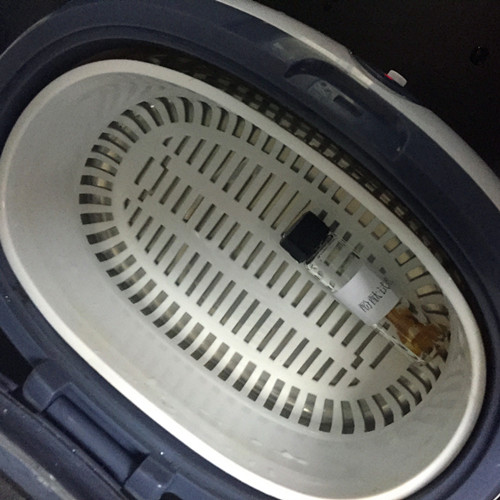 首先我們稱取0.5g剪碎的樣本,放入西布曲明檢測(cè)試劑A中,超聲提取5min;