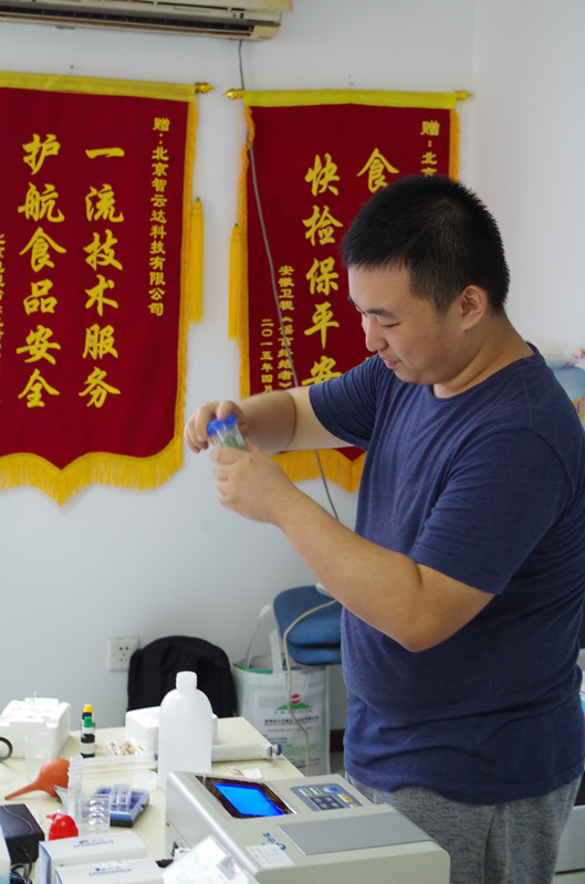 下午由技術(shù)人員現(xiàn)場做快檢實(shí)驗(yàn)操作,涉及肉制品、乳制品。其中主要演示果蔬農(nóng)藥殘留的快速檢測(農(nóng)殘儀、農(nóng)殘卡);乳制品中三聚氰胺檢測;甲醛的快速檢測;食品中二氧化硫的快速檢測;劣質(zhì)“地溝油”快速檢測;肉制品中瘦肉精快速檢測等項(xiàng)目。