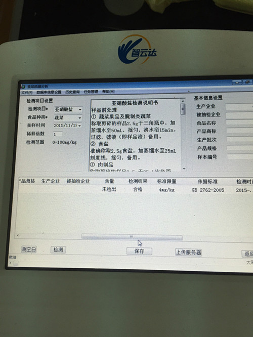 結(jié)果顯示亞硝酸鹽含量未超標(biāo),符合國家標(biāo)準(zhǔn)。