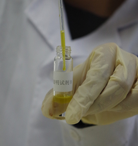 取0.5 g內容物取一支試劑A,將所取樣品加入管中,