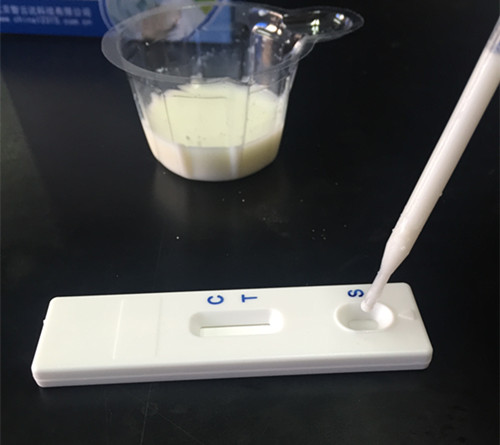 用干燥、潔凈的比色管盛放奶粉,用純凈水1:10稀釋(1份奶粉+10份純凈水),溶解后用于檢測(cè)。