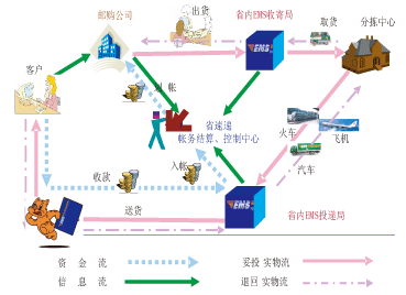 投遞局把投遞郵件清單發(fā)往省速遞結算中心,并將貨款匯到指定的帳戶;